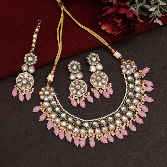 Pink Color Meena Work Kundan Necklace Set (KN1392PNK)
