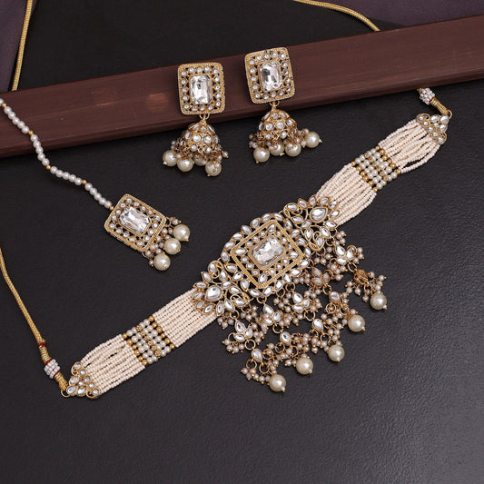 White Color Choker Kundan Necklace Set (KN1357WHT)