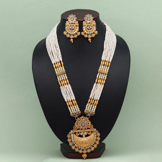 Gold Color Vilandi Kundan Matte Gold Rajwadi Temple Necklace Set (TPLN591GLD)