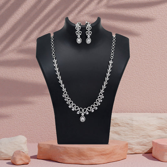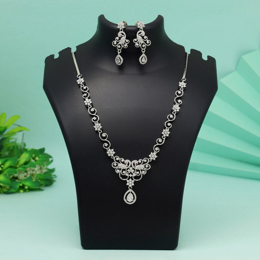 Silver Color American Diamond Necklace Set (CZN1030SLV)