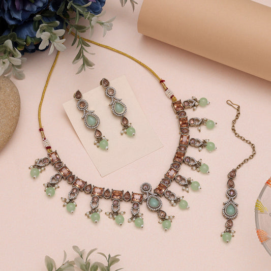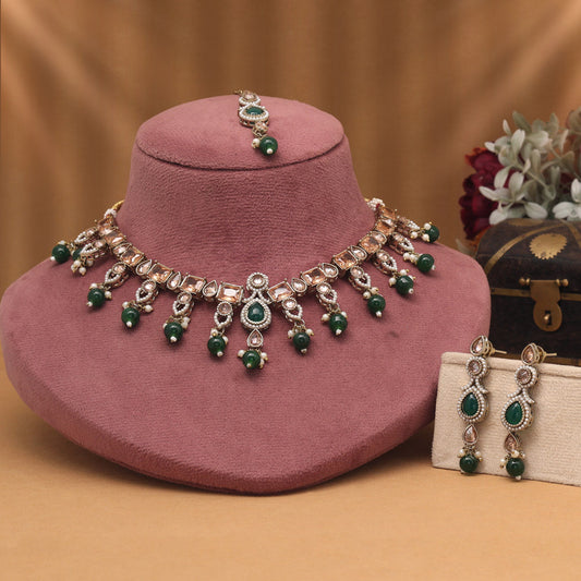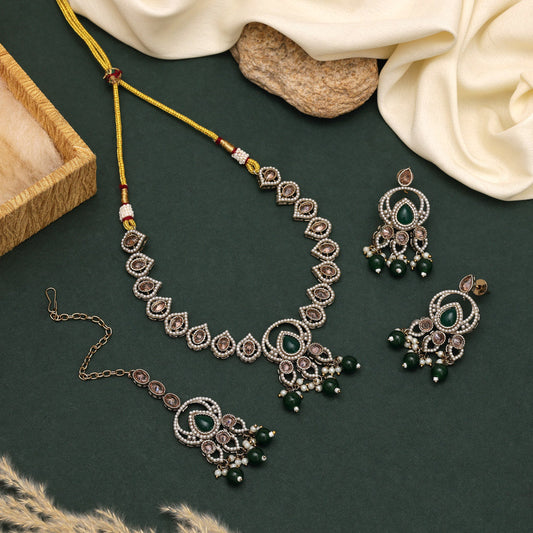 Statement Green Color American Diamond Necklaces Set With Bold Design Accents