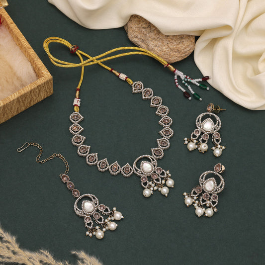 Silver Color American Diamond Necklace Set Reflecting Festive Spirit And Grace