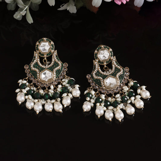 Green Color Pakistani Kundan Earrings (KDE1017GRN)