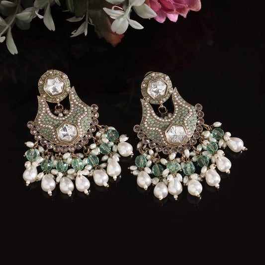 Pista Green Color Pakistani Kundan Earrings (KDE1017PGRN)