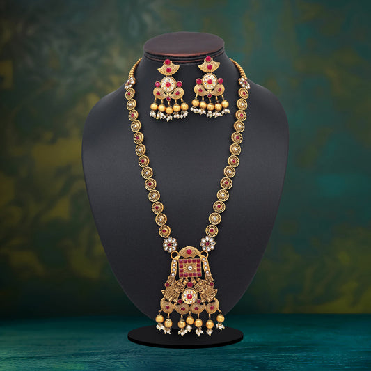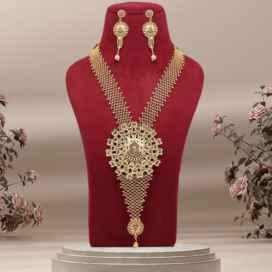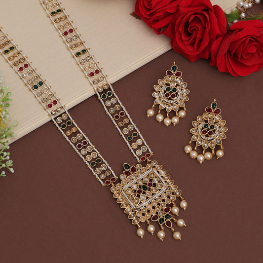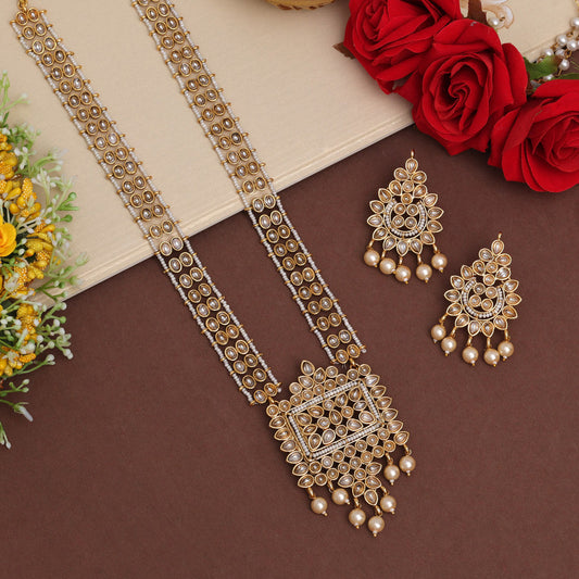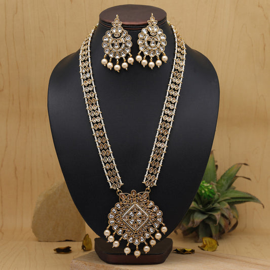 Gold Color Long Kundan Necklace Set (KN1383GLD)
