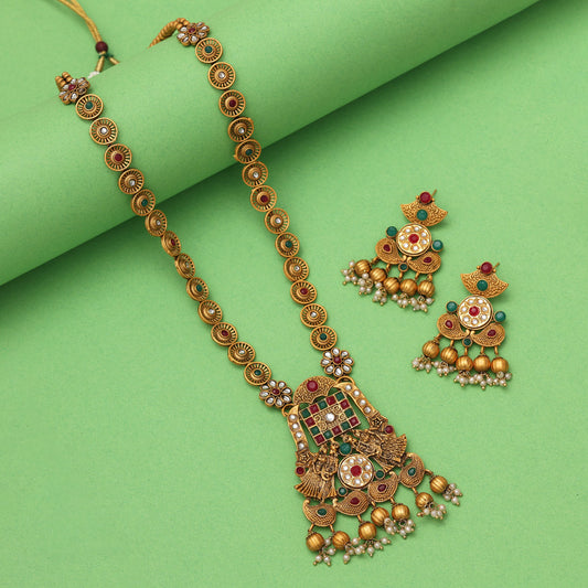 Gold Color Long Kundan Necklace Set (KN1384GLD)
