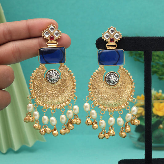 Blue Color Handmade Brass Earrings Premium Jaipur Jewellery