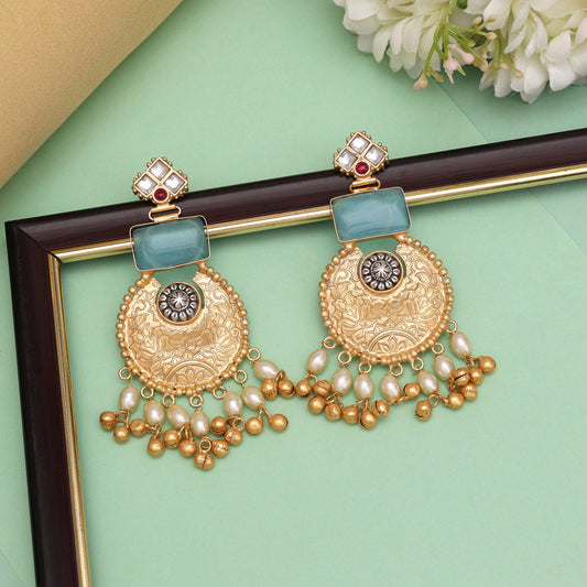Turquoise Blue Color Pakistani Kundan Earrings (KDE1004TBLU)