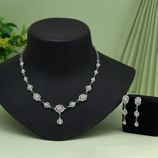Green Color American Diamond Necklace Set (CZN1027GRN)