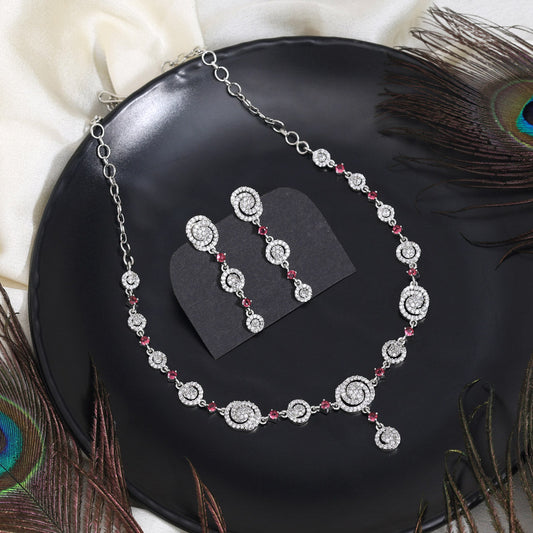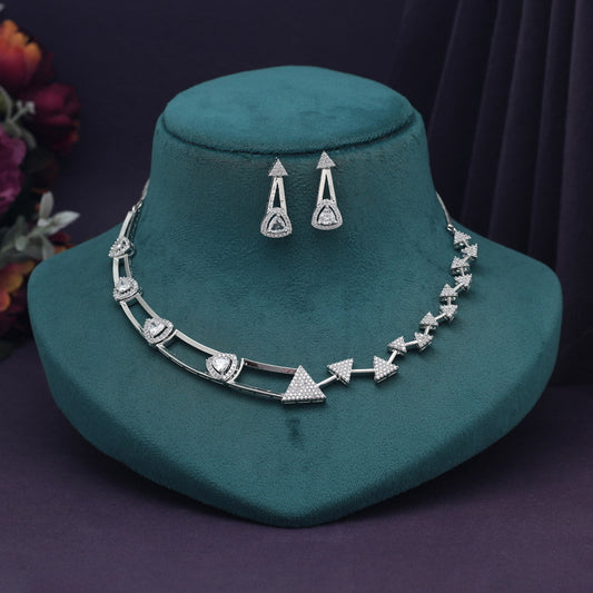 Silver Color American Diamond Necklace Set (CZN994SLV)