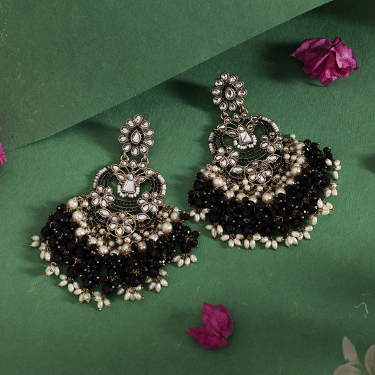 Black Color Pakistani Kundan Earrings (KDE1004BLK)