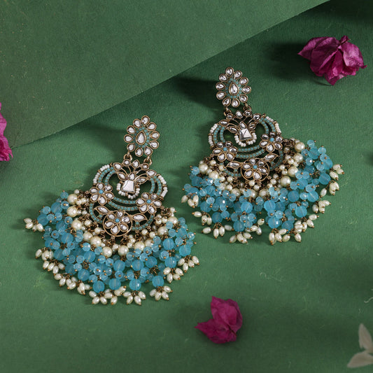 Sky Blue Color Handmade Brass Earrings Premium Jaipur Jewellery