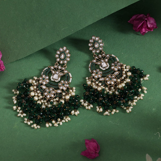 Green Color Pakistani Kundan Earrings (KDE1004GRN)