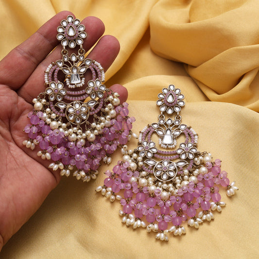 Light Purple Color Pakistani Kundan Earrings (KDE1004LPRP)