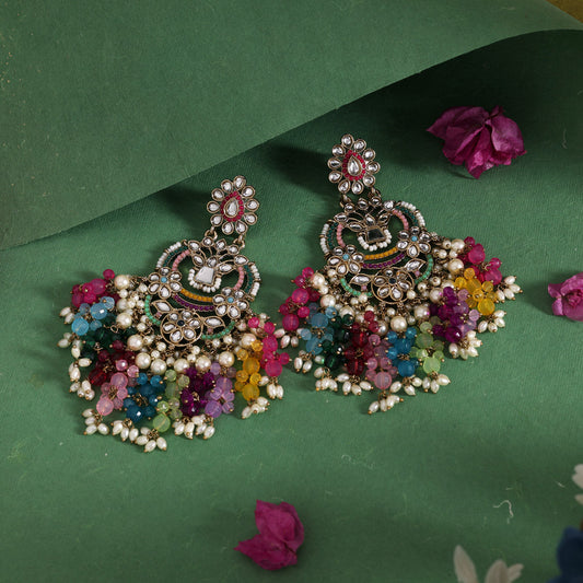 Multi Color Pakistani Kundan Earrings (KDE1004MLT)