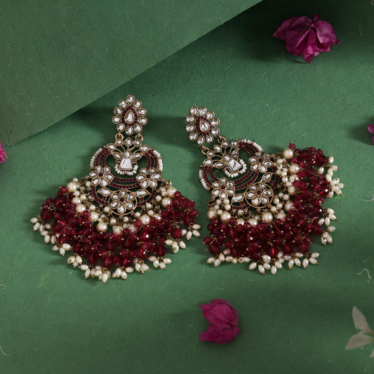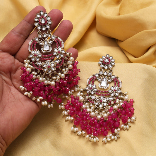 Magenta Color Pakistani Kundan Earrings (KDE1004MNT)