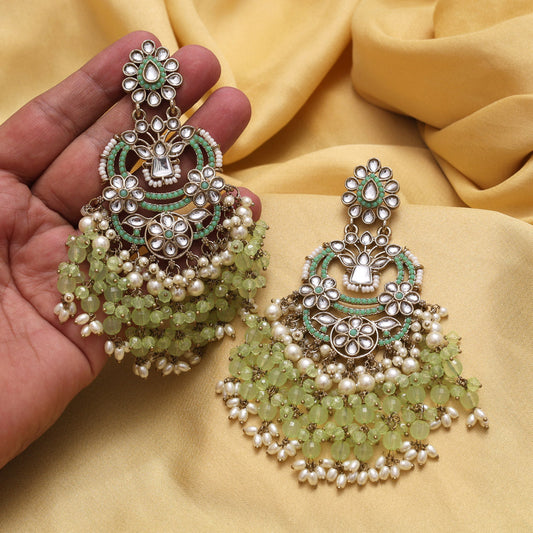 Pista Green Color Pakistani Kundan Earrings (KDE1004PGRN)