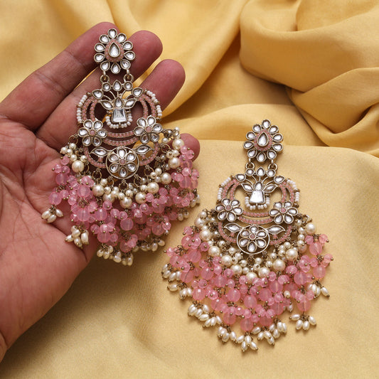 Pink Color Pakistani Kundan Earrings (KDE1004PNK)