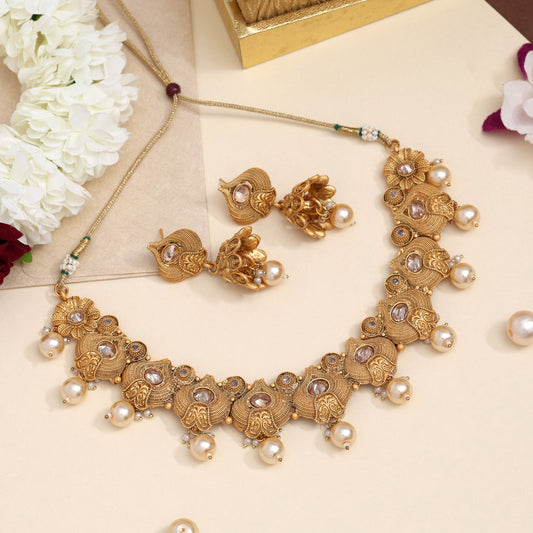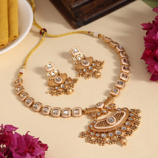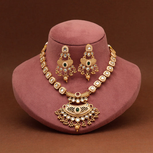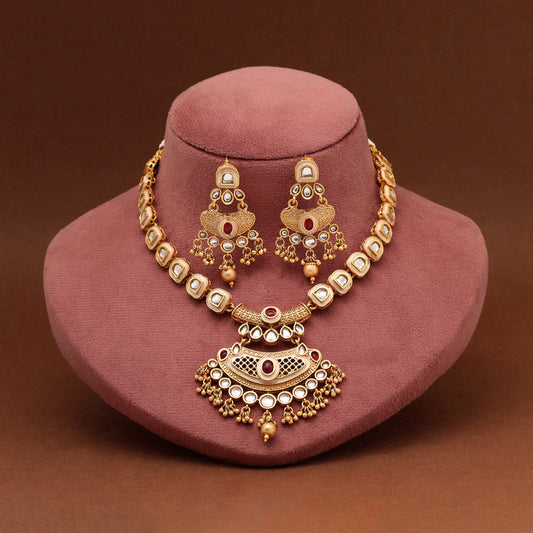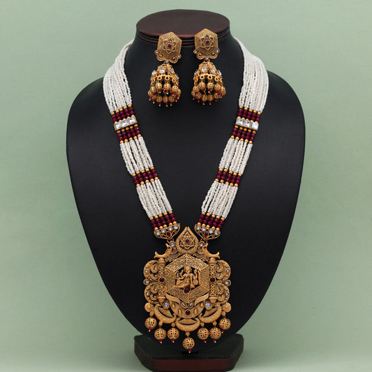 Gold Color Matte Gold Rajwadi Temple Necklace Set