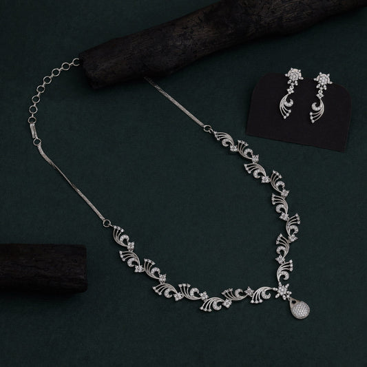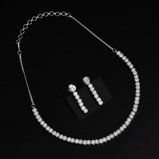 Silver Color American Diamond Necklace Set (CZN1011SLV)