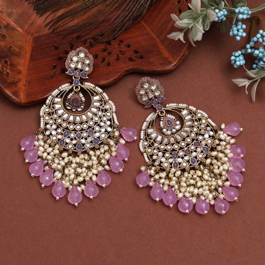 Light Purple Color Kundan Earrings (KDE1006LPRP)