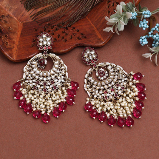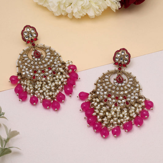 Magenta Color Kundan Earrings (KDE1006MNT)