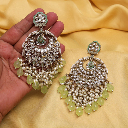Pista Green Color Kundan Earrings (KDE1006PGRN)