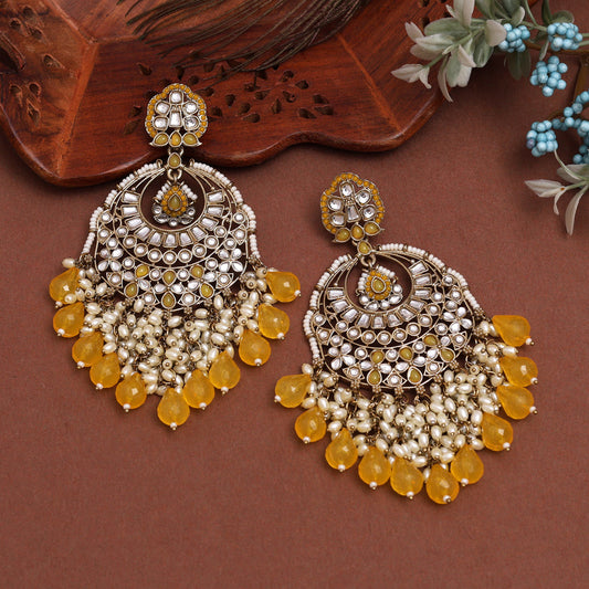 Yellow Color Kundan Earrings (KDE1006YLW)