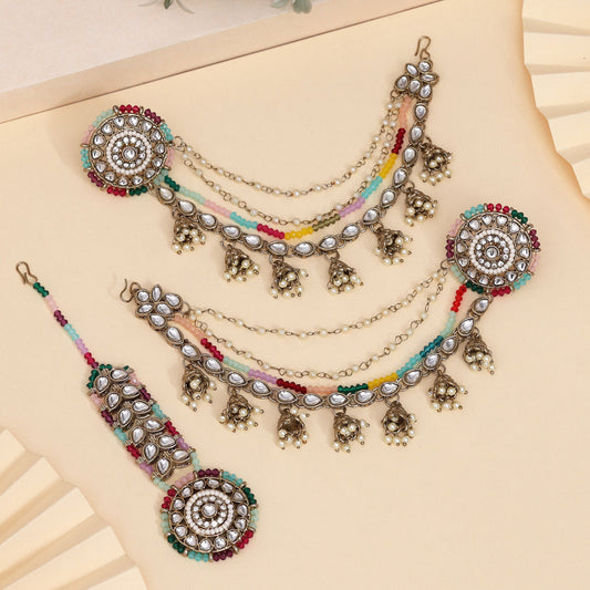 Festive Multi Color Kundan Earrings With Maang Tikka