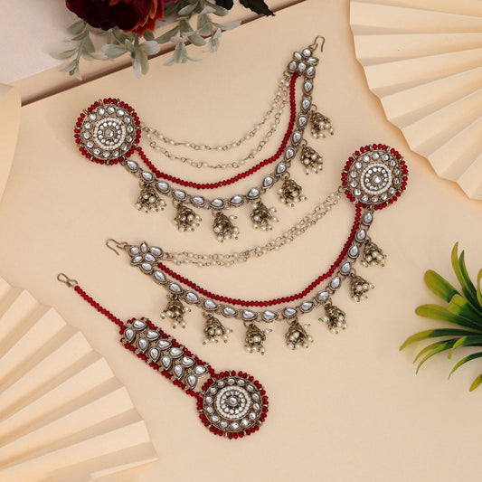 Deep Maroon Color Kundan Earrings With Maang Tikka