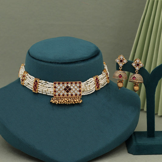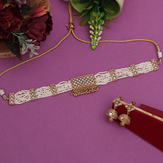 White Color Choker Kundan Necklace Set (KN1402WHT)