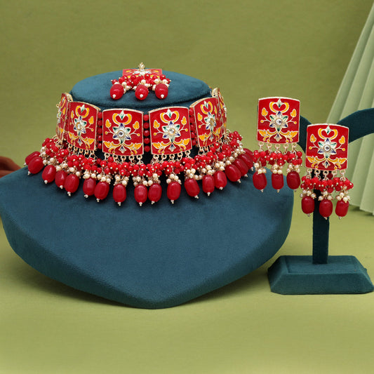 Red Color Choker Meenakari Necklace Set (MKN596RED)