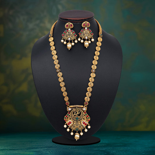 Gold Color Matte Gold Rajwadi Temple Necklace Set (TPLN667GLD)