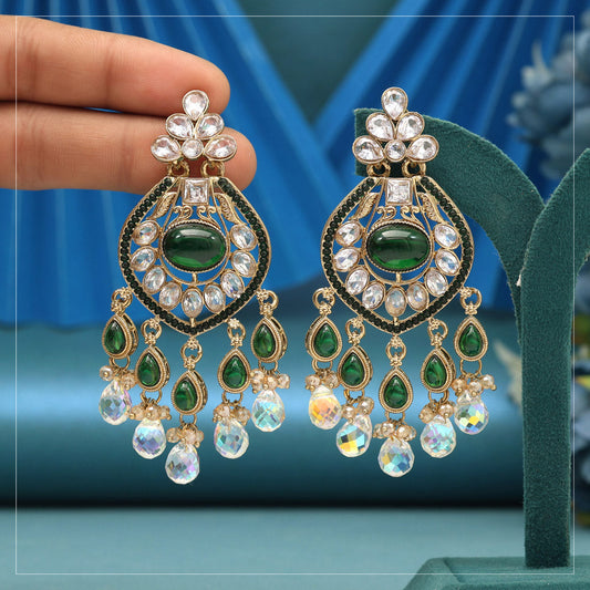 Pista Green Color American Diamond Earrings (ADE620PGRN)