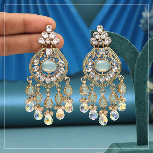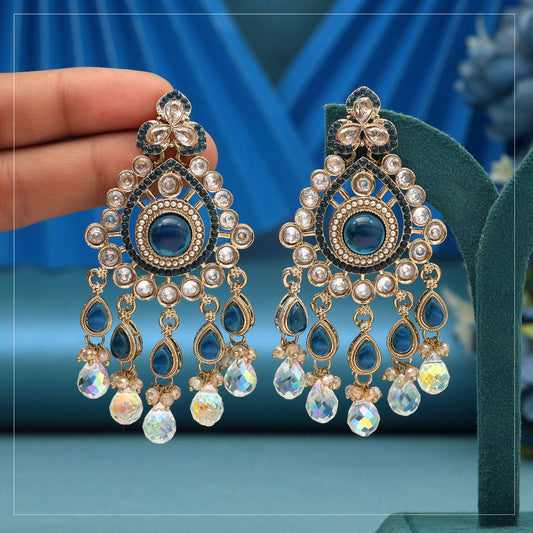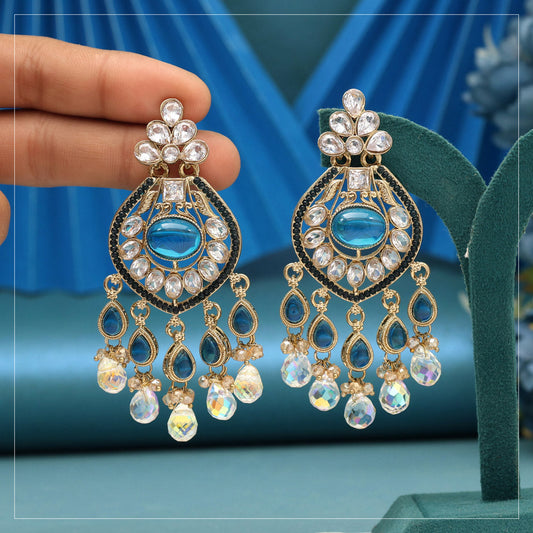 Sky Blue Color Kundan Earrings (KDE926SBLU)