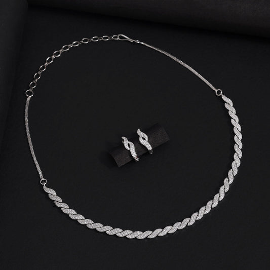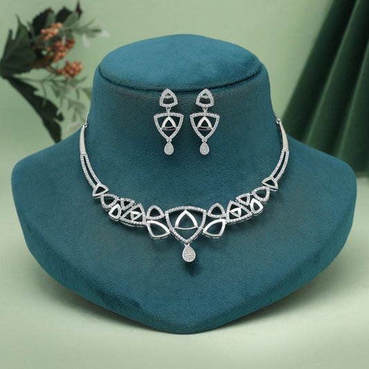 Silver Color American Diamond Necklaces Set (CZN1044SLV)