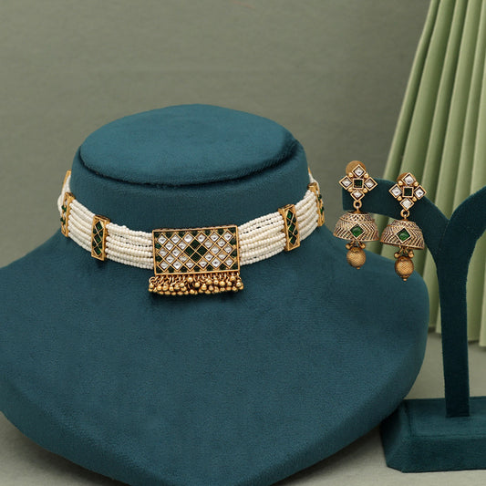 Green Color Choker Kundan Necklace Set (KN1402GRN)