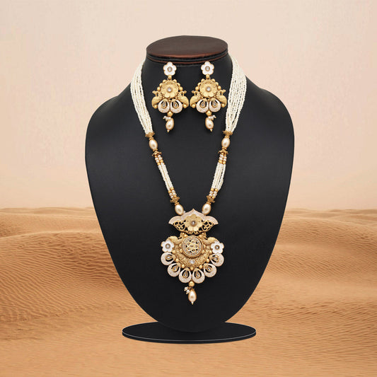 Gold Color Rajwadi Matte Gold Temple Necklace Set (TPLN260GLD)