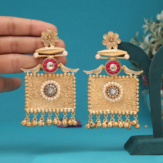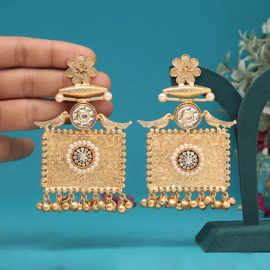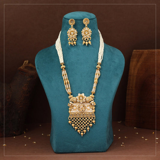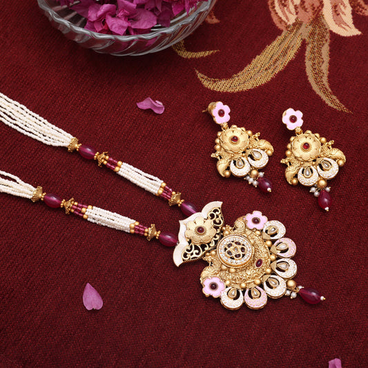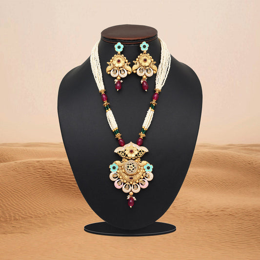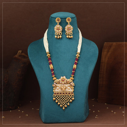 Gold Color Meena Work Matte Gold Rajwadi Temple Necklace Set