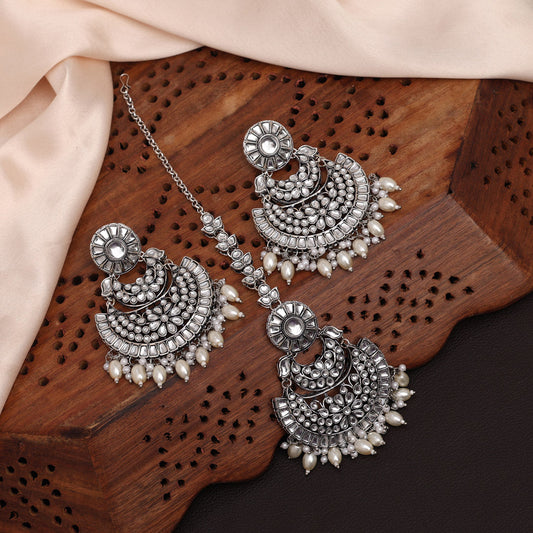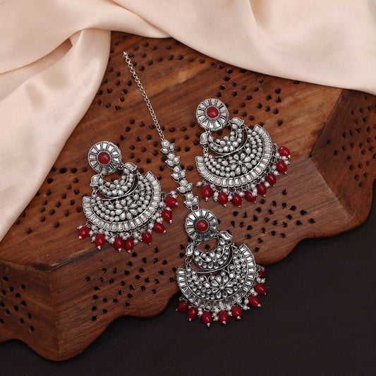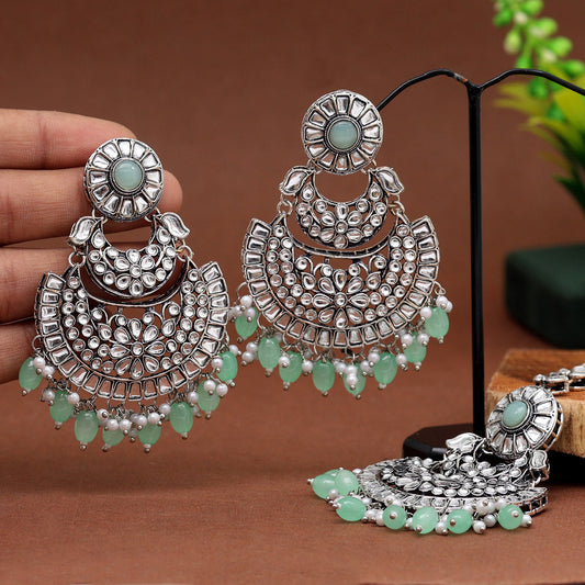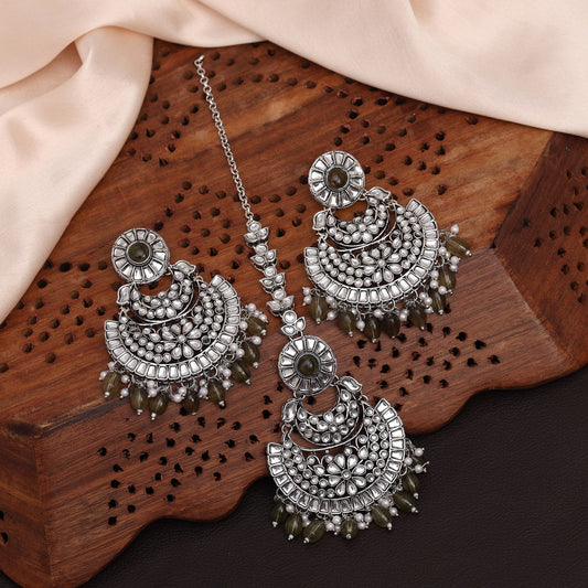 Mehandi Green Color Kundan Earrings With Maang Tikka
