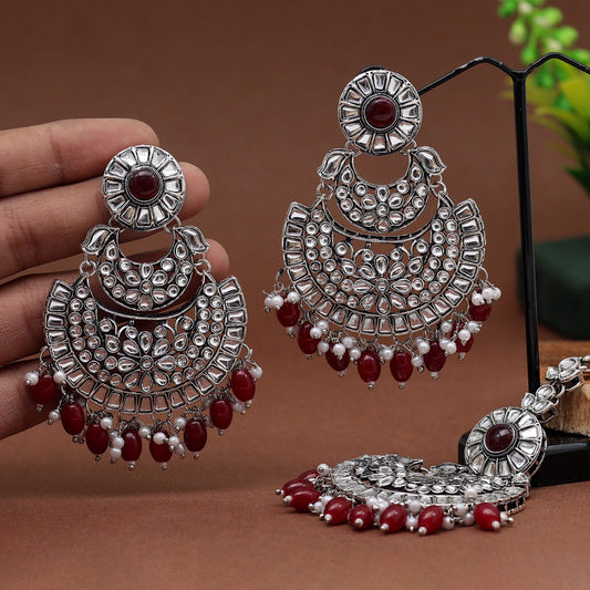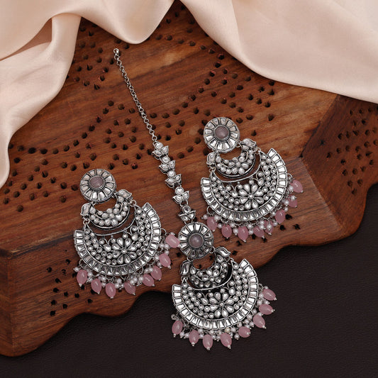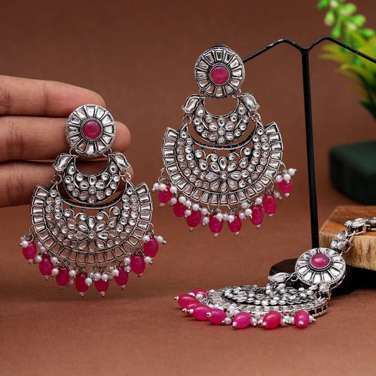 Pink Color Kundan Earrings With Maang Tikka (KDTE546PNK)