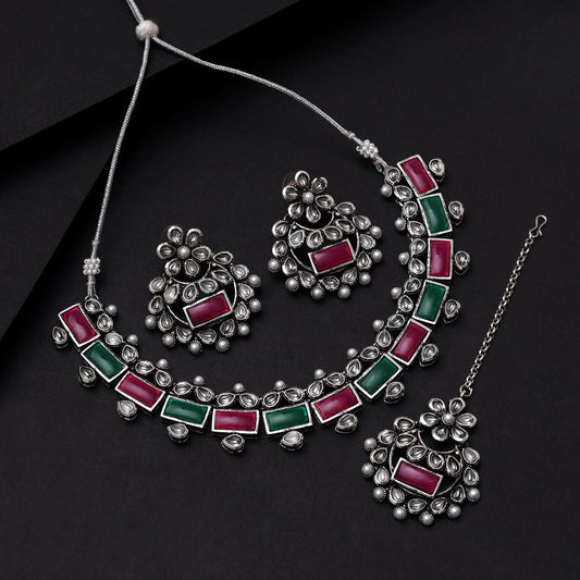 Rani & Green Color Oxidised Necklace Set (GSN2062RNIGRN)
