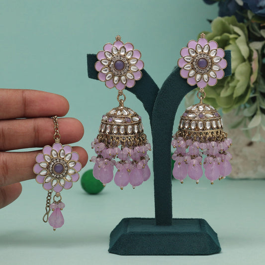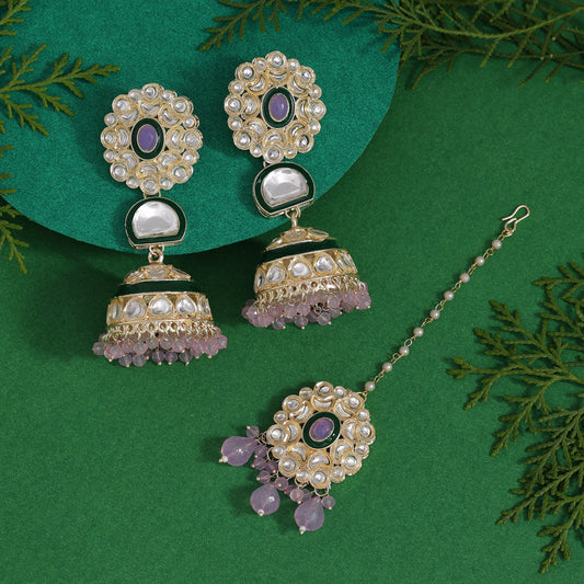 Light Purple Color Kundan Earrings With Maang Tikka (KDTE559LPRP)