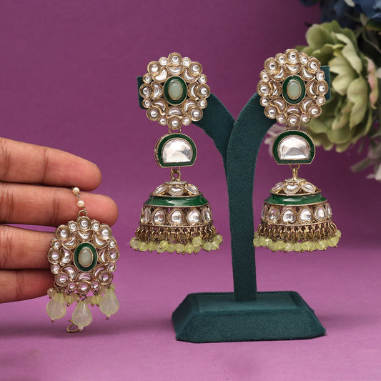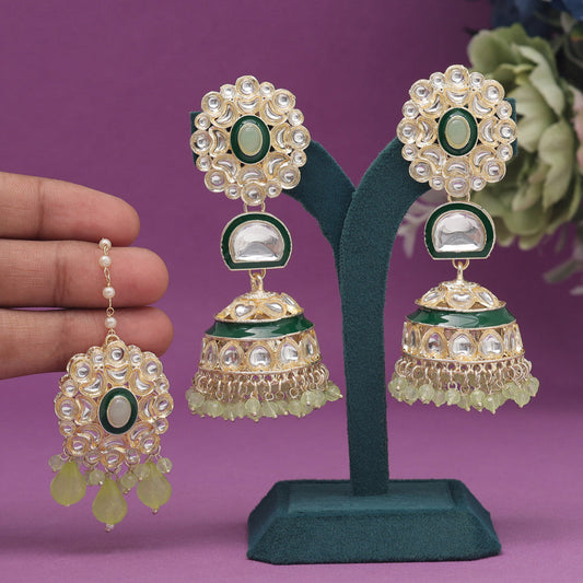 Pista Green Color Kundan Earrings With Maang Tikka (KDTE559PGRN)