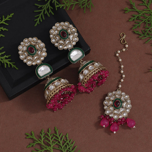 Magenta Color Kundan Earrings With Maang Tikka (KDTE559MNT)