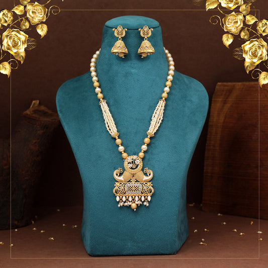 White Color Matte Gold Rajwadi Temple Necklace Set