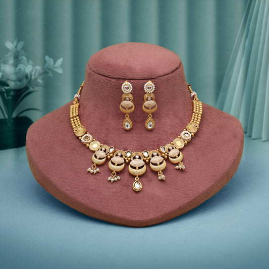 Gold Color Matte Gold Rajwadi Temple Necklace Set (TPLN702GLD)