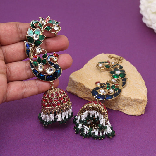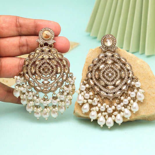 White Color Big Size Jhumka Kundan Earrings (KDE958WHT)