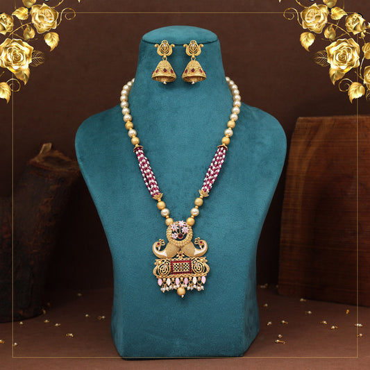 Rani Color Matte Gold Rajwadi Temple Necklace Set