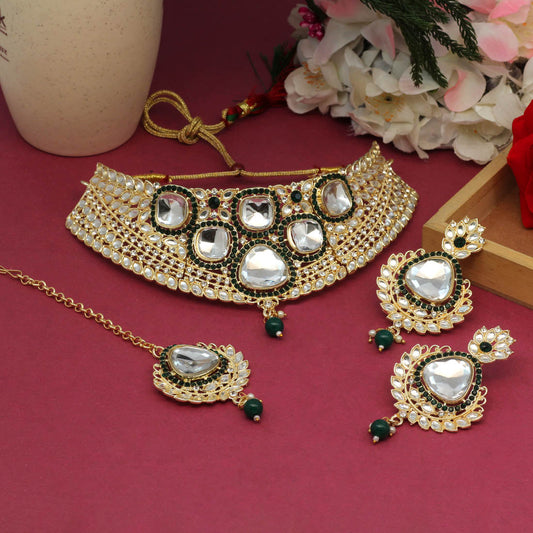 Green Color Choker Kundan Necklace Set (KN1124GRN)